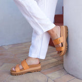 תגידו שלום ל-Cushion Vista Hi! כפכפים קלאסיים עם שתי רצועות מעור טבעוני בחלק העליון. וסוליה חיצונית מעוצבת שמוסיפה גובה וסגנון בחלק התחתון.