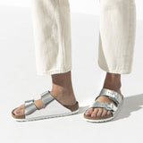 בירקנשטוק כפכפי נשים אריזונה סילבר מטאלי Birkenstock Arizona Metallic Silver